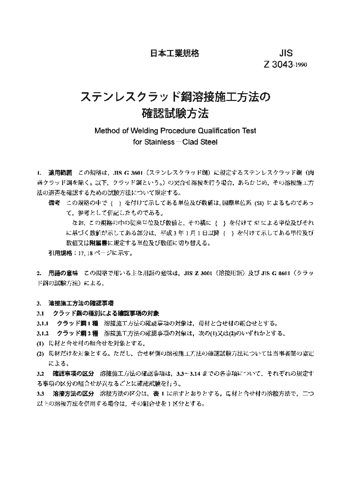 JIS Z3043-1990 不锈复合钢焊接程序质量合格鉴定试验的方法