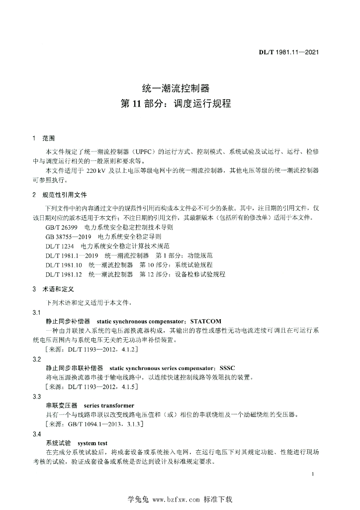 DL/T 1981.11-2021 统一潮流控制器 第11部分:调度运行规程