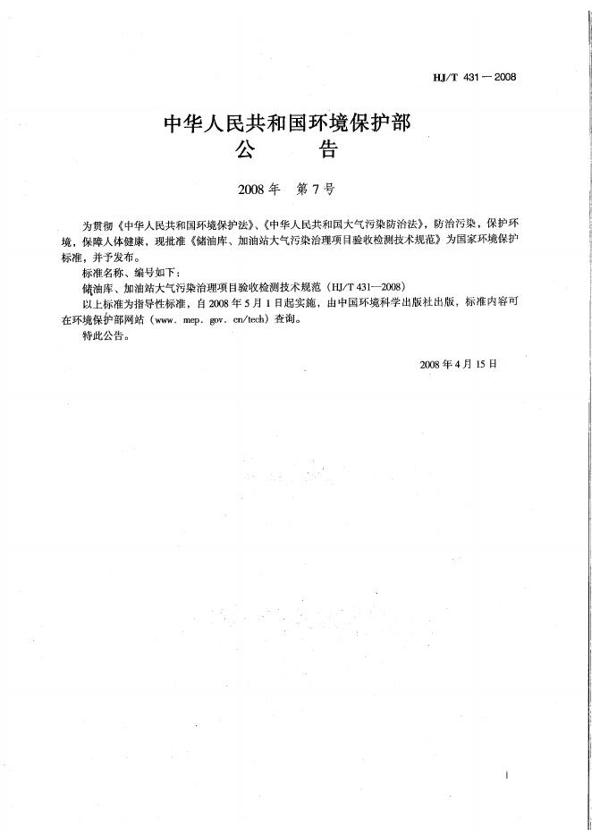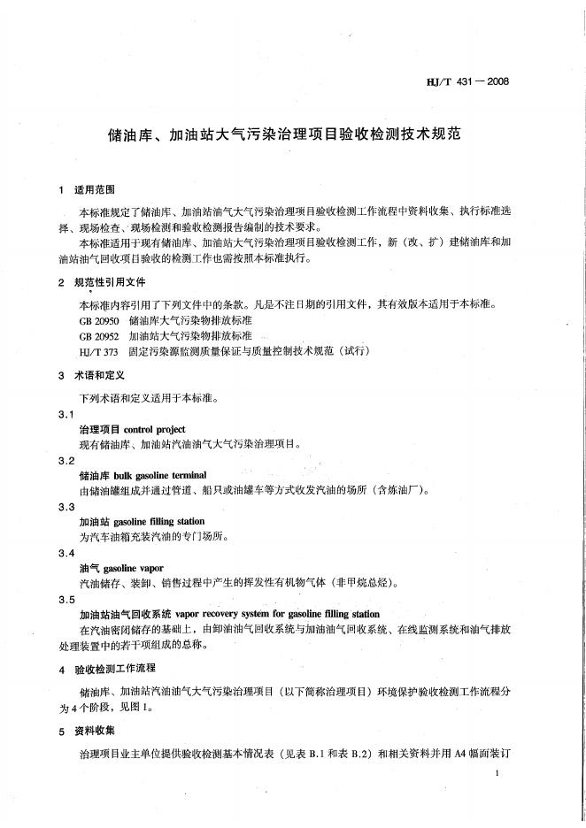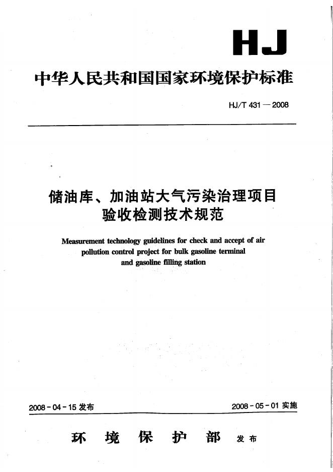 HJ/T 431-2008 储油库、加油站大气污染治理项目验收检测技术规范