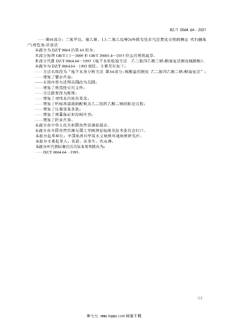 DZ/T 0064.64-2021 地下水质分析方法 第64部分:硫酸盐的测定乙二胺四乙酸二钠一钡滴定法