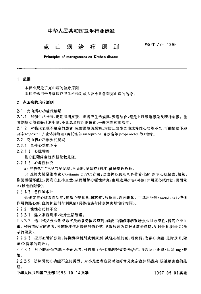 WS/T 77-1996 克山病治疗原则