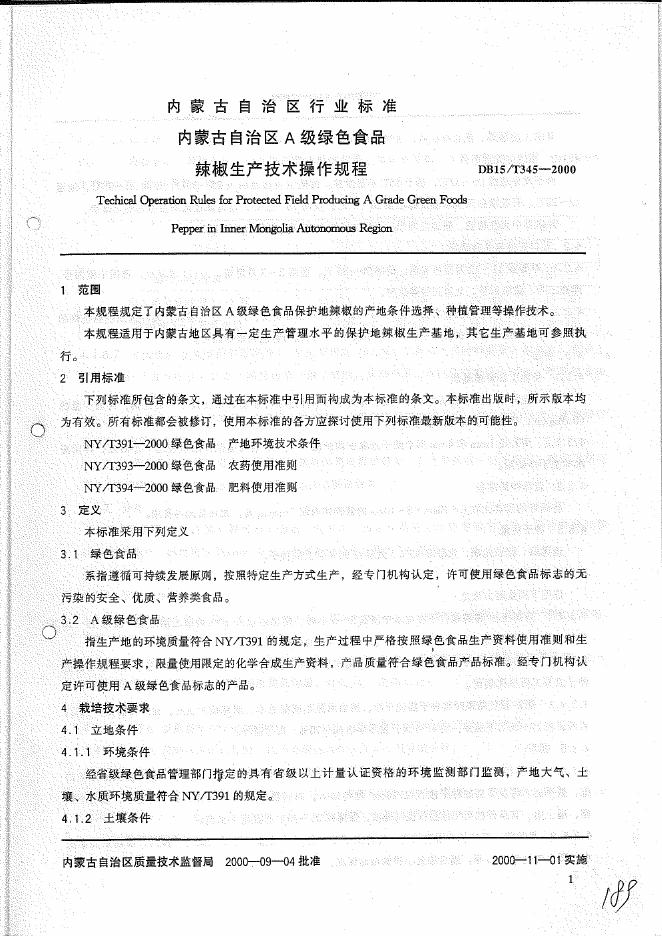 DB15/T 345-2000 内蒙古自治区A级绿色食品辣椒生产技术操作规程