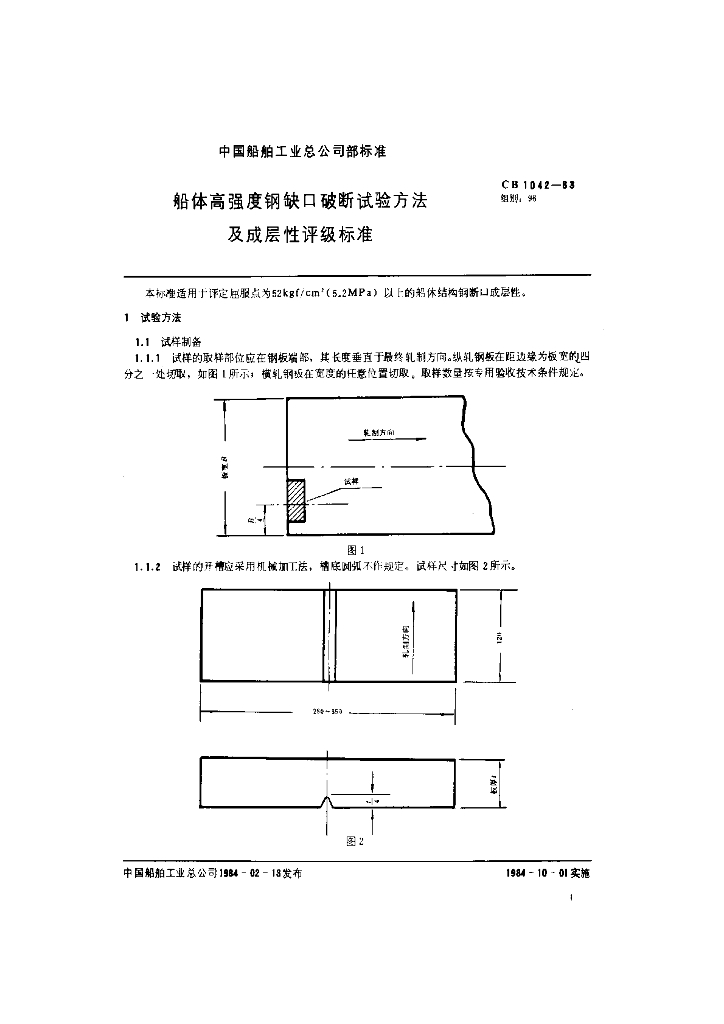 CB 1042-1988 船体高强度钢缺口破断试验方法及成层性评级标准