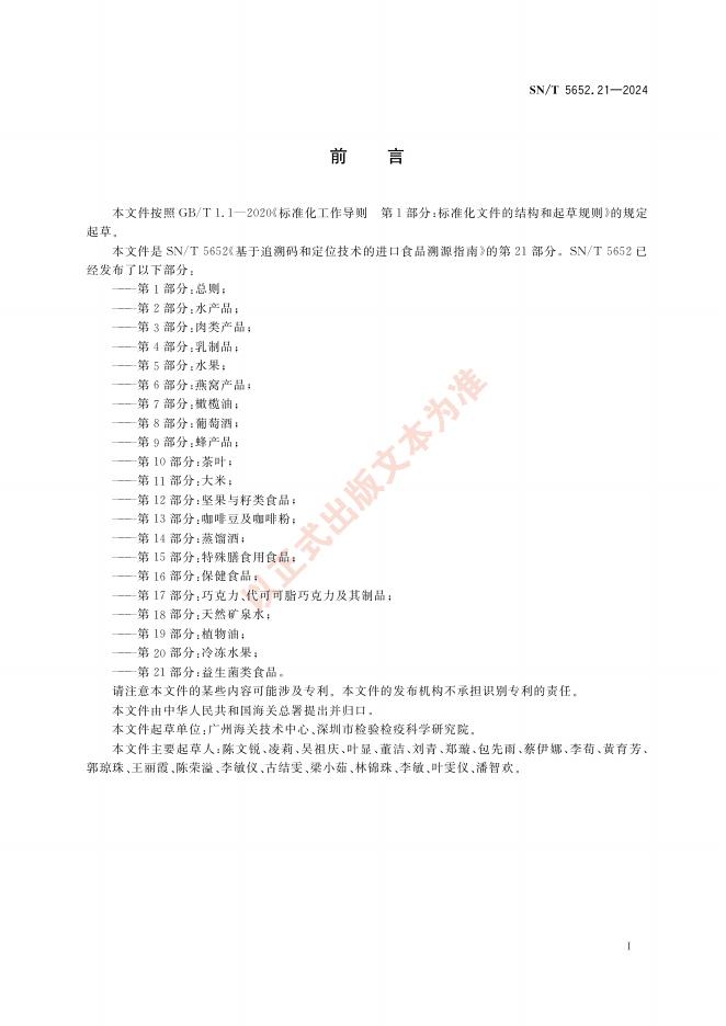 SN/T 5652.21-2024 基于追溯码和定位技术的进口食品溯源指南 第21部分:益生菌类食品