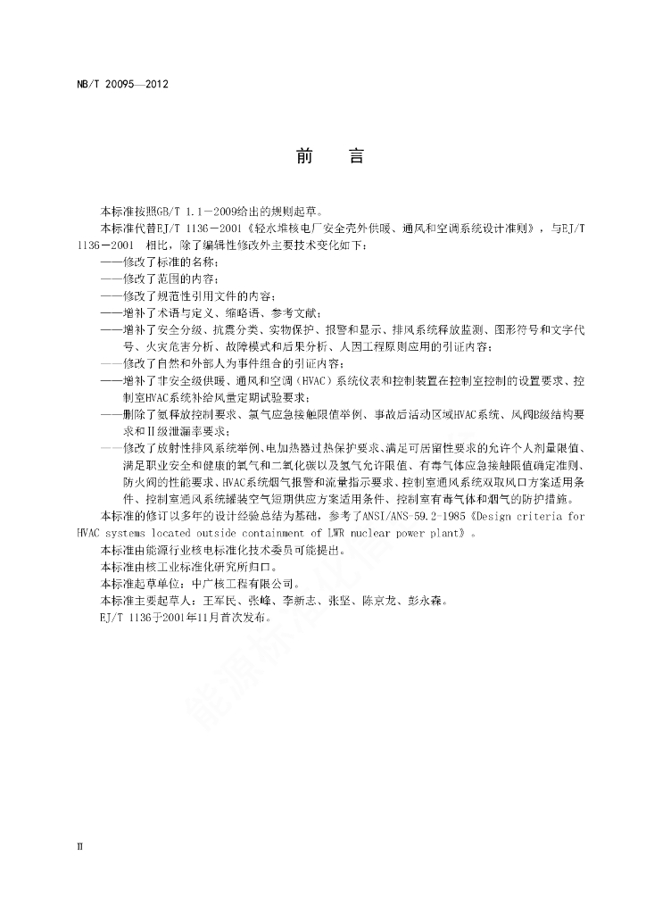NB/T 20095-2012 压水堆核电厂安全壳外供暖、通风、空调系统设计准则