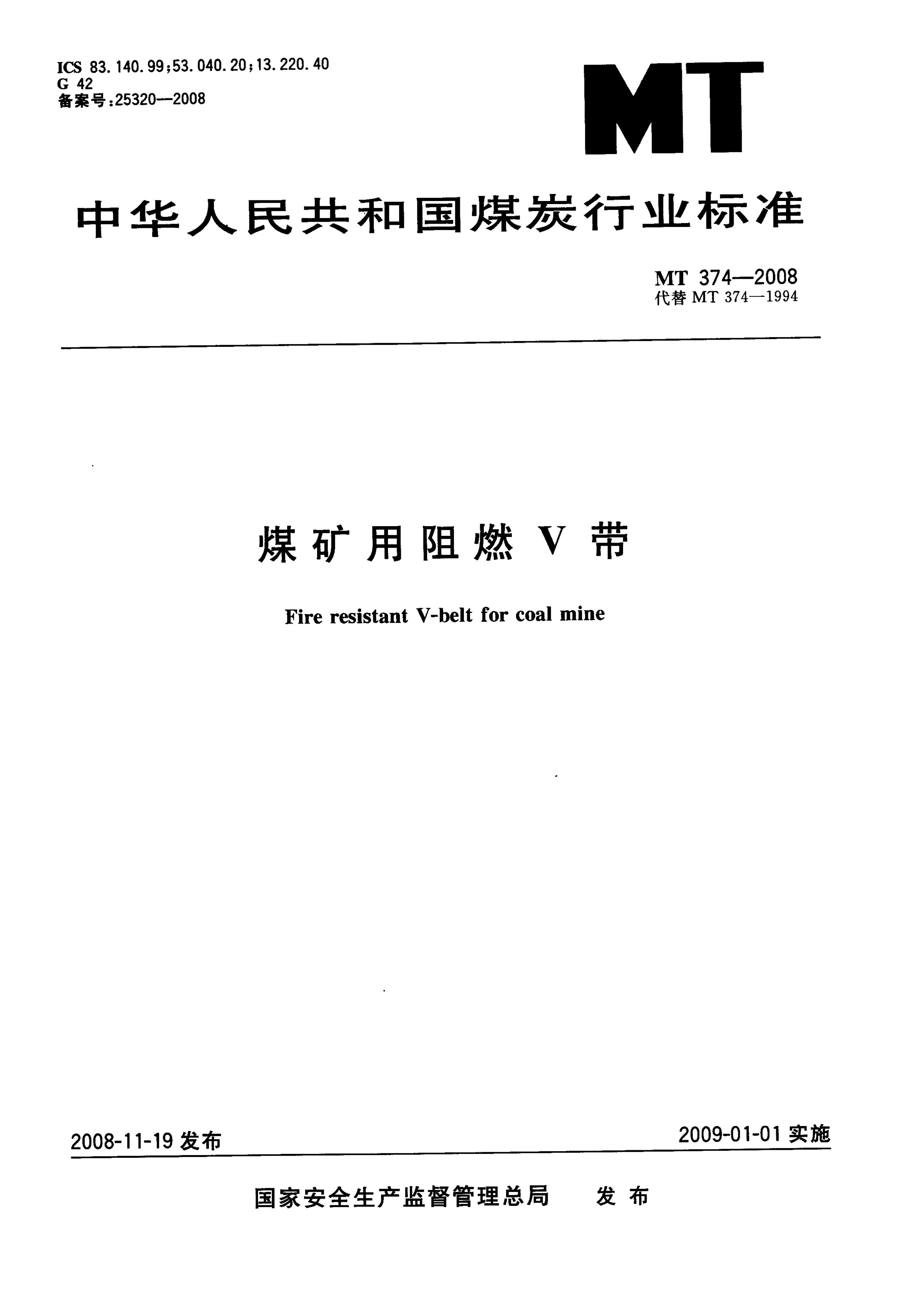MT 374-2008 煤矿用阻燃三角带