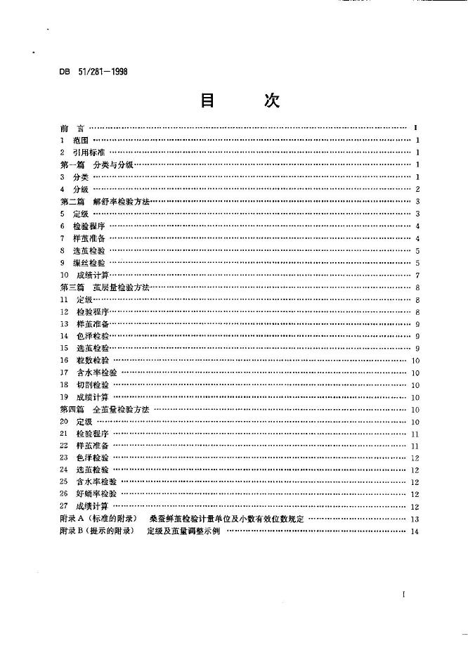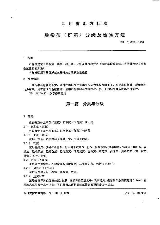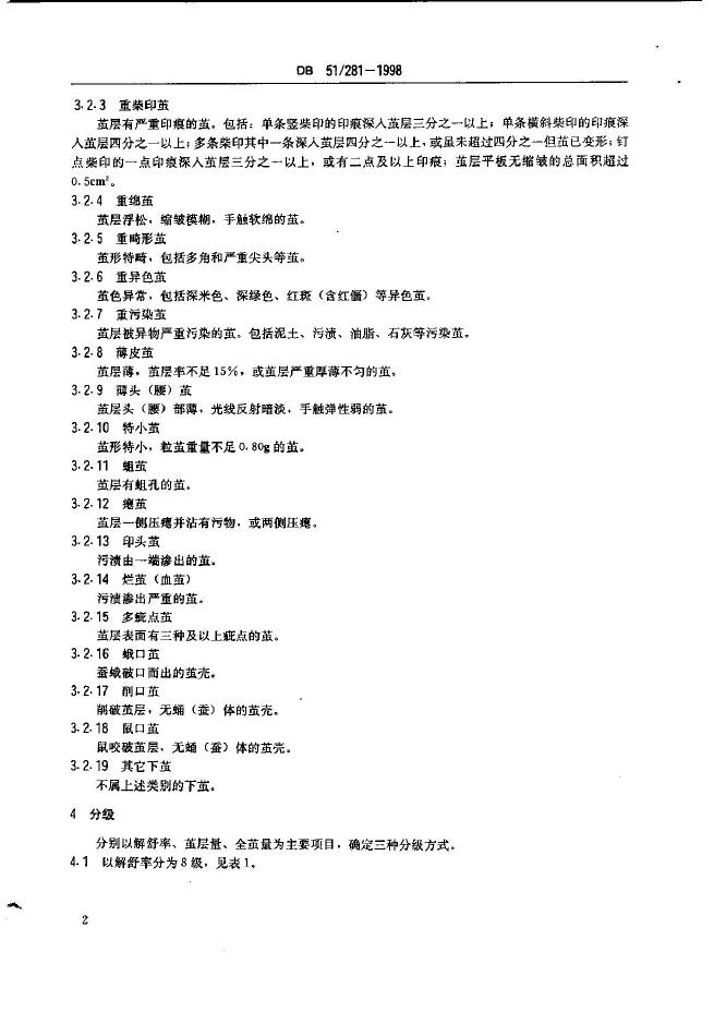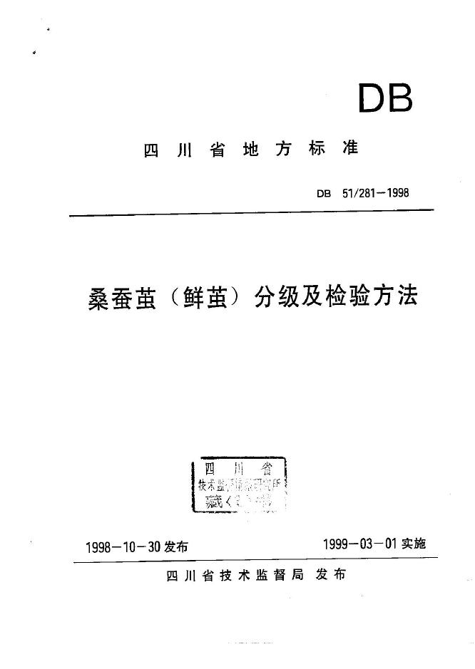 DB51/ 281-1998 桑蚕茧(鲜茧)分级及检验方法