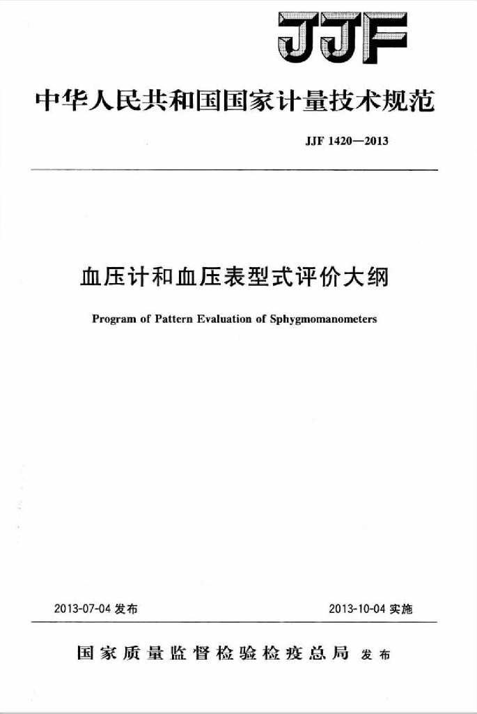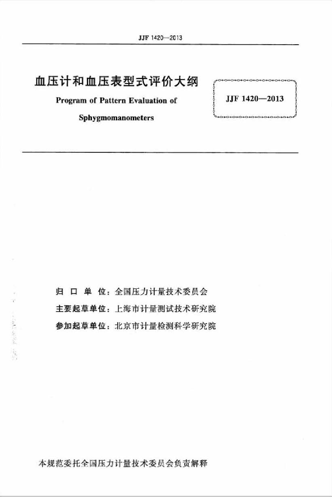 JJF 1420-2013 血压计和血压表型式评价大纲