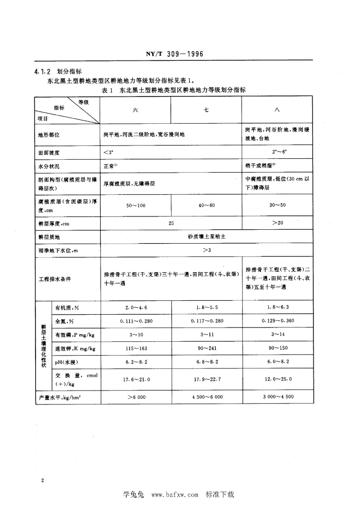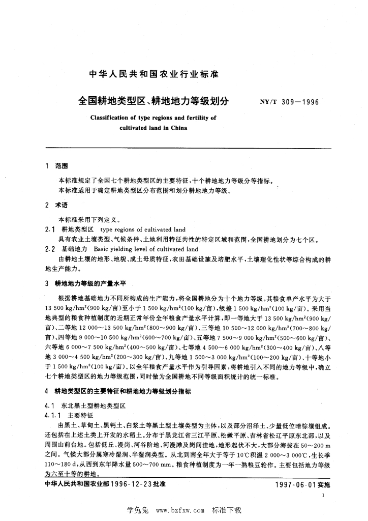NY/T 309-1996 全国耕地类型区、耕地地力等级划分