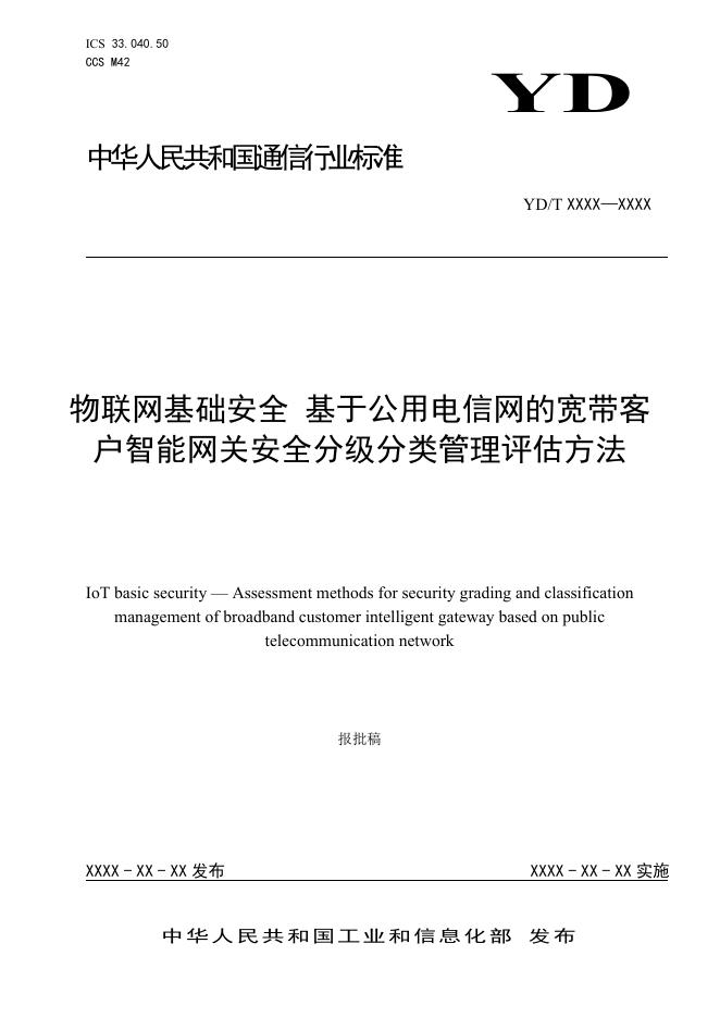 YD/T 6040-2024 物联网基础安全 基于公用电信网的宽带客户智能网关安全分级分类管理评估方法