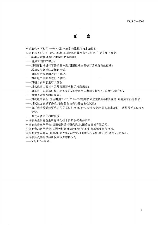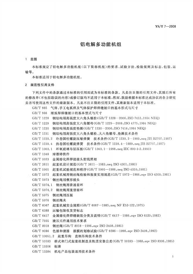 YS/T 7-2008 铝电解多功能机组