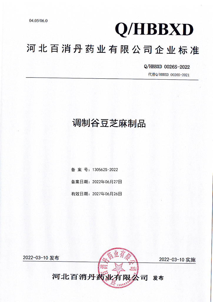 Q/HBBXD 0026S-2022 调制谷豆芝麻制品