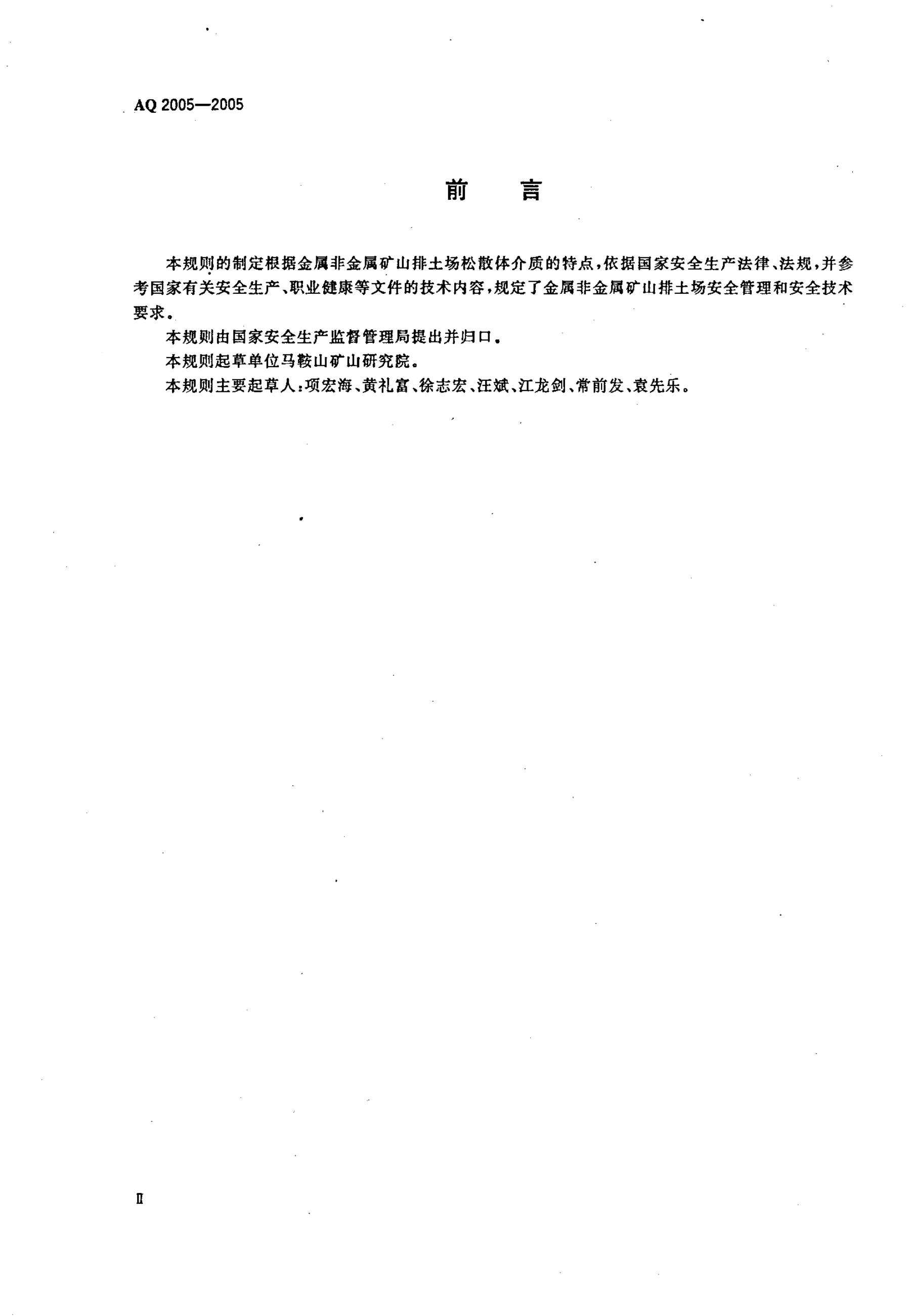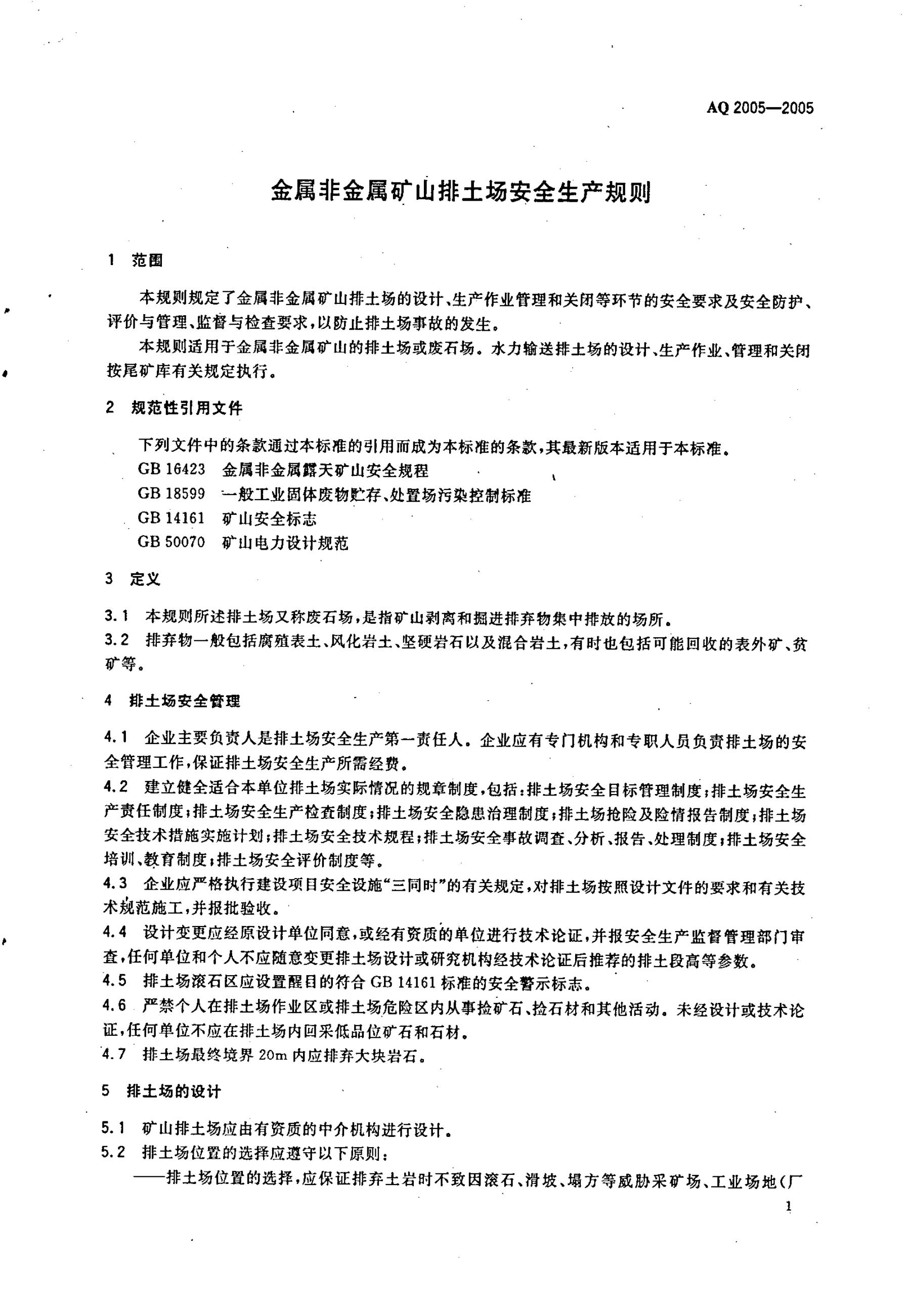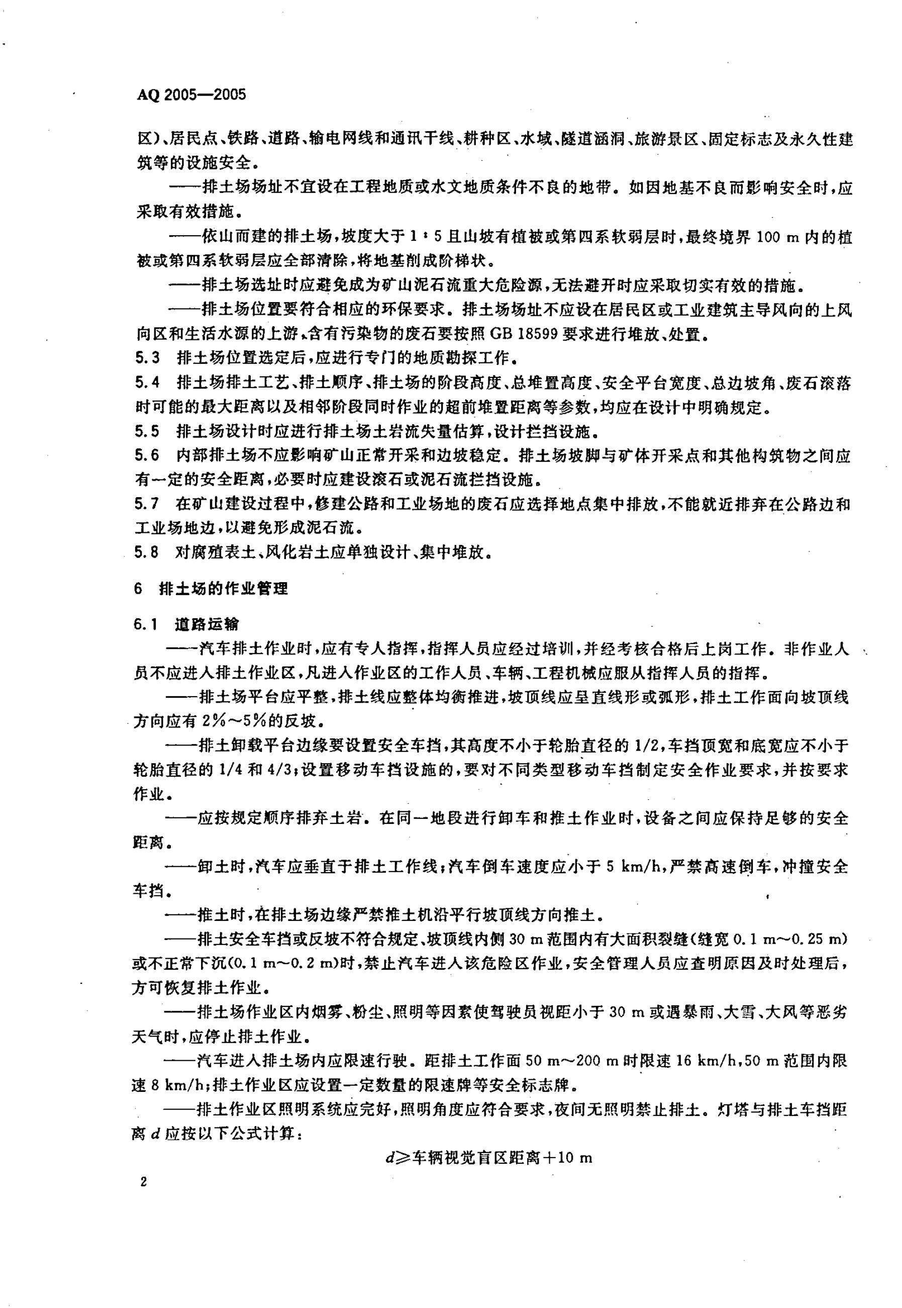 AQ 2005-2005 金属非金属矿山排土场安全生产规则