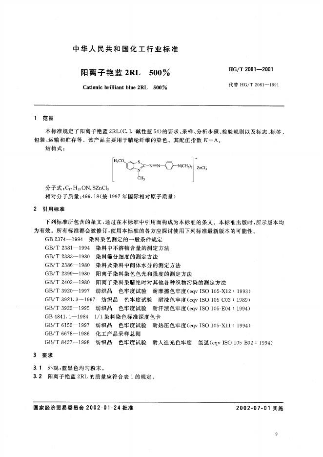 HG 2081-1991 阳离子艳蓝2RL