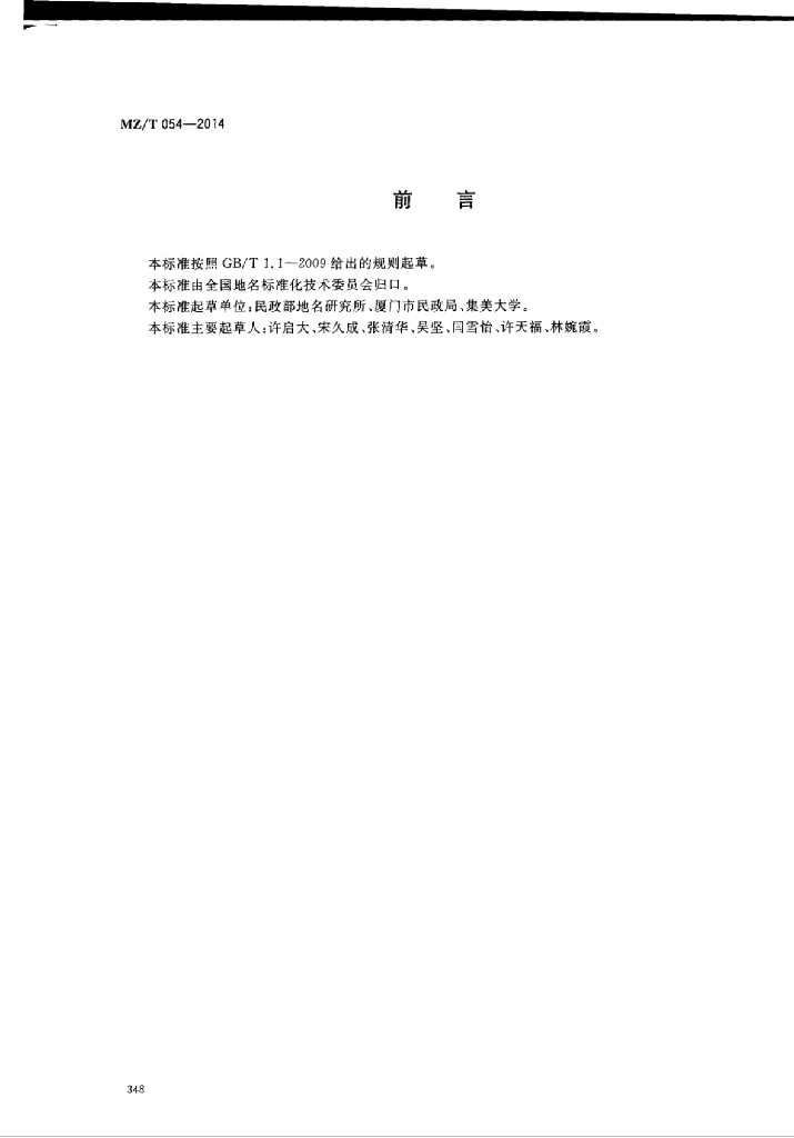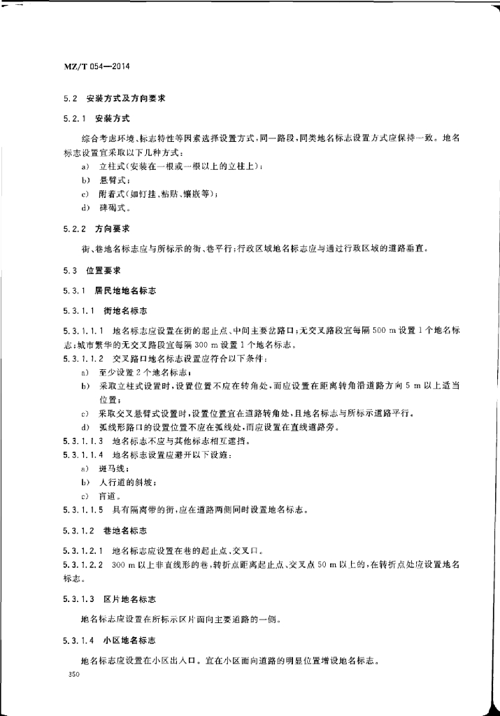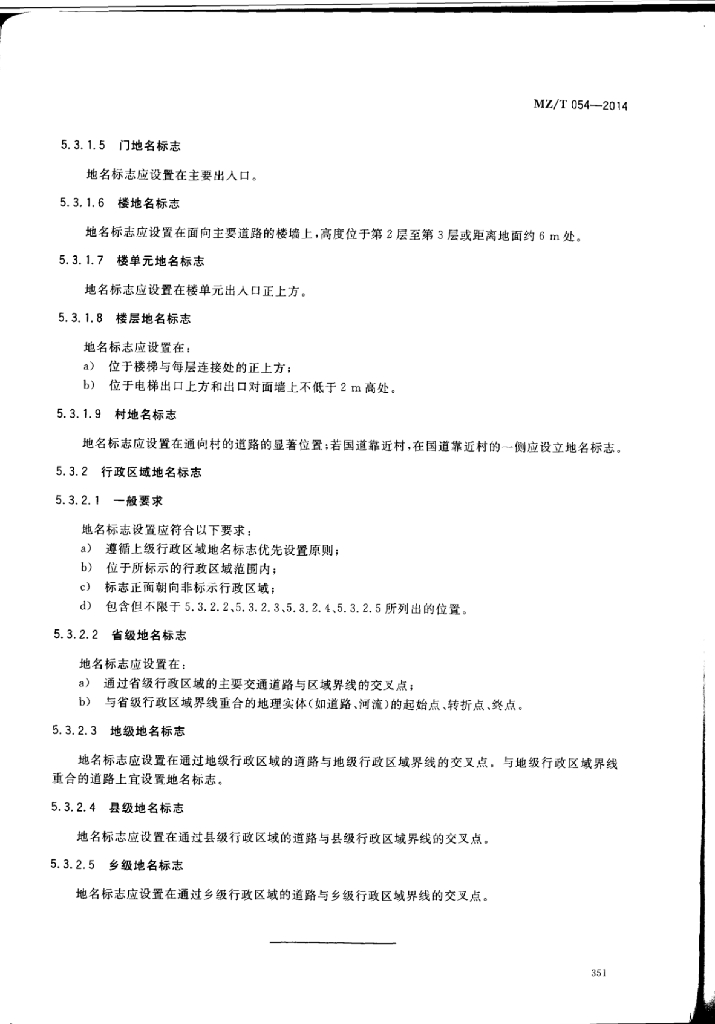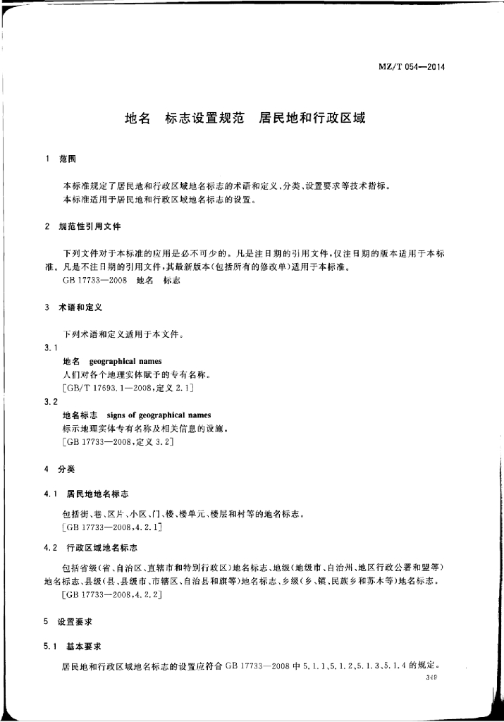 MZ/T 054-2014 地名标志设置规范居民地和行政区域