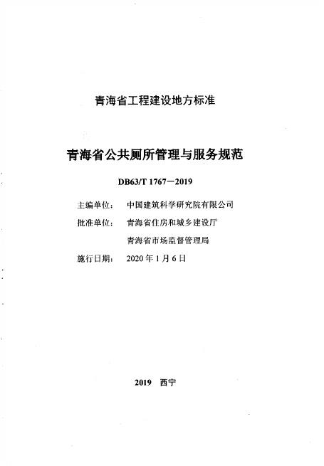 DB63/T 1767-2019 青海省公共厕所管理与服务规范