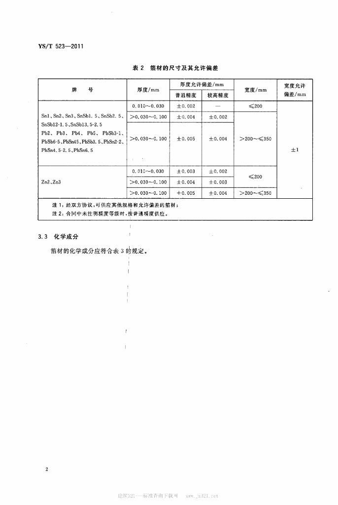 YS/T 523-2011 锡、铅及其合金箔和锌箔