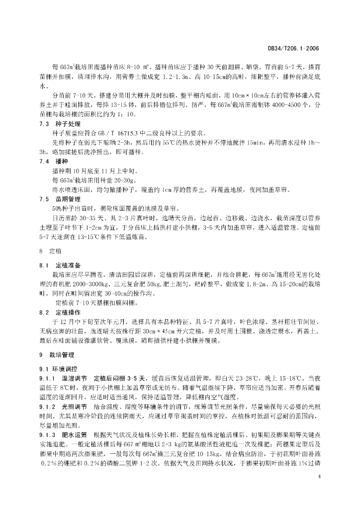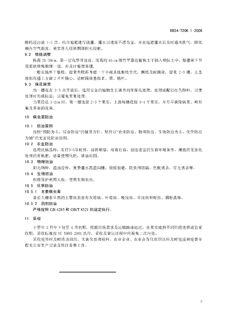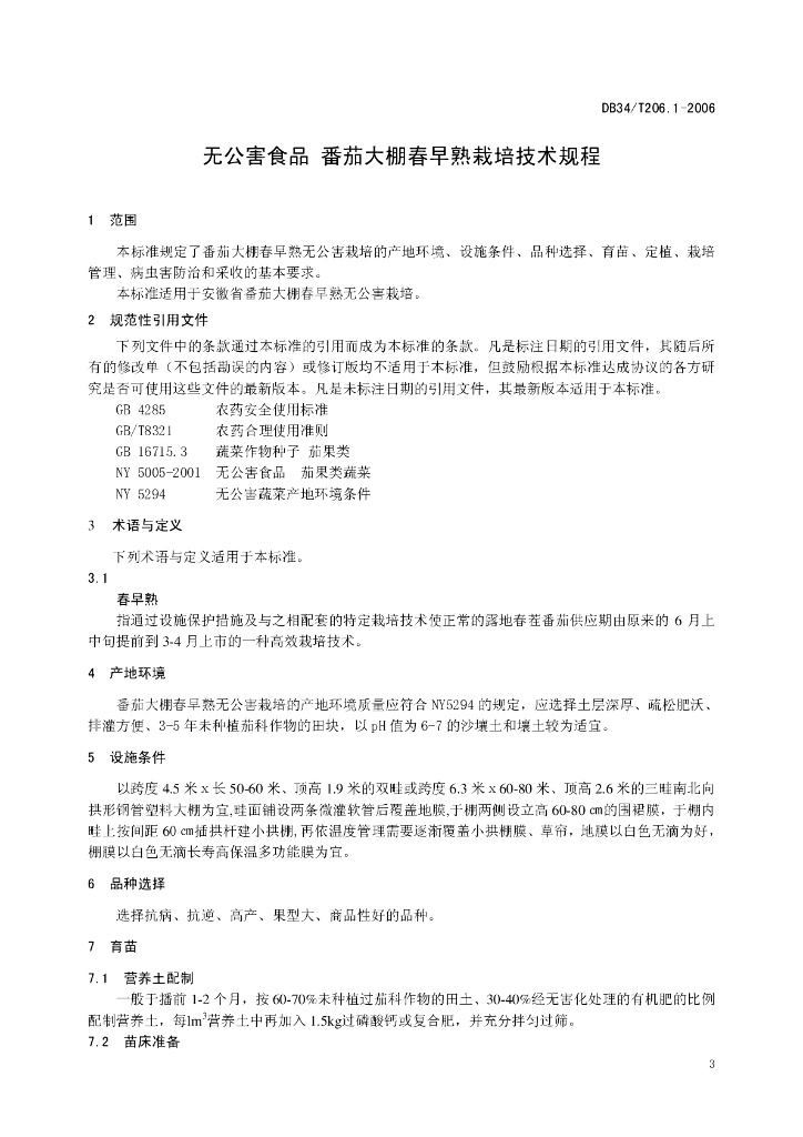 DB34/T 206.1-2006 无公害食品 番茄大棚春早熟栽培技术规程