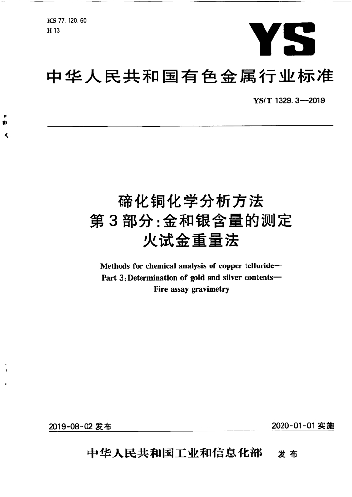 YS/T 1329.3-2019 碲化铜化学分析方法 第3部分:金和银含量的测定 火试金重量法