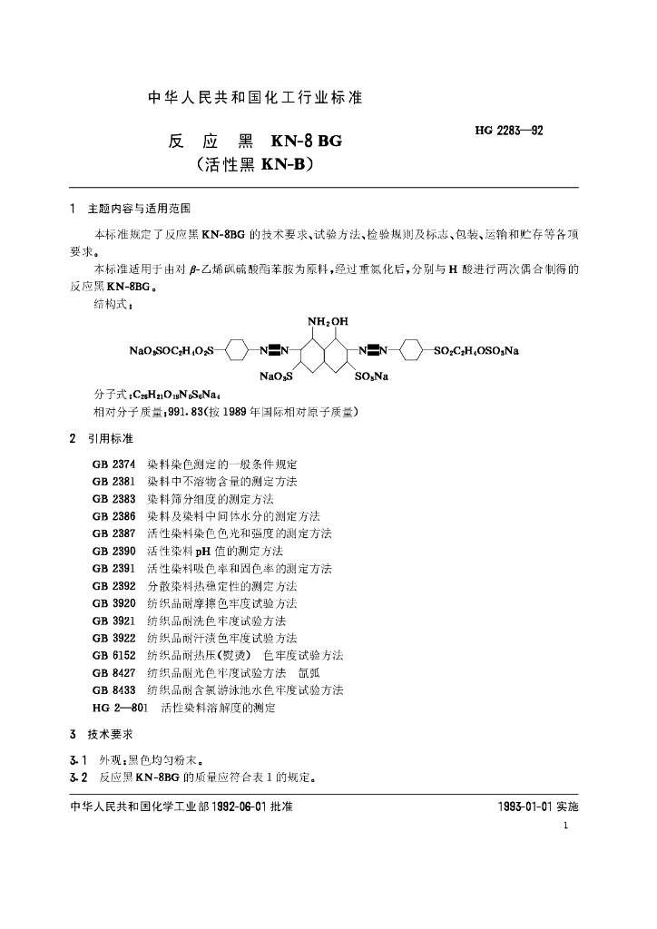 HG 2283-1992 反应黑KN-8BG(活性黑KN-B)