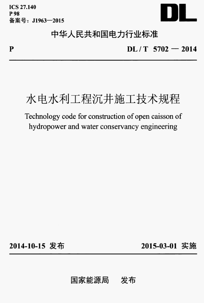 DL/T 5702-2014 水电水利工程沉井施工技术规程