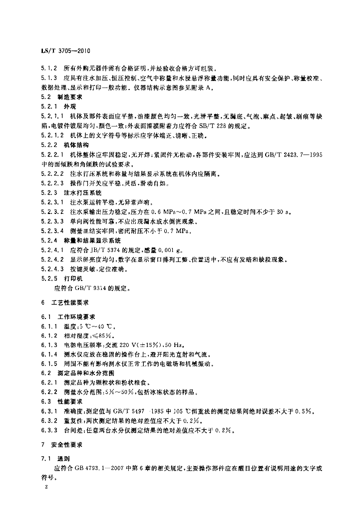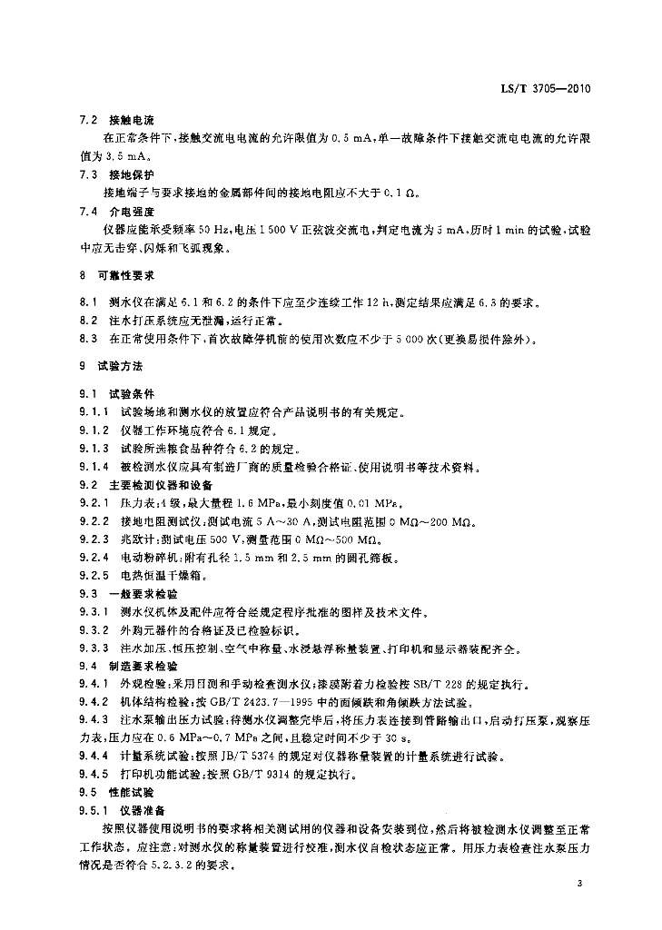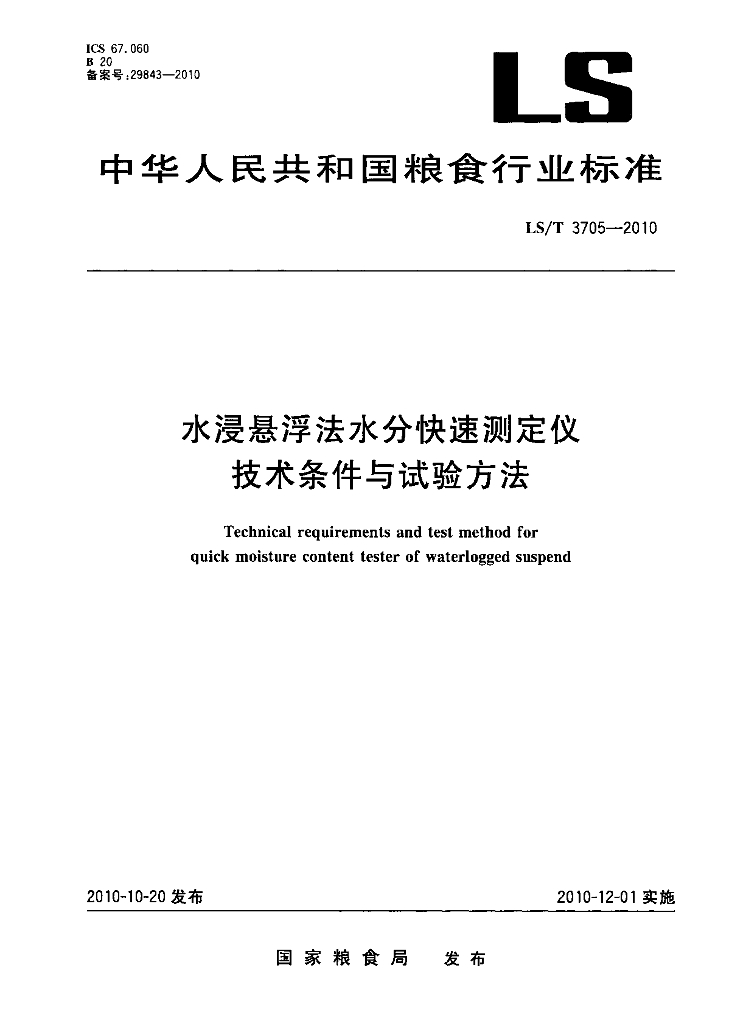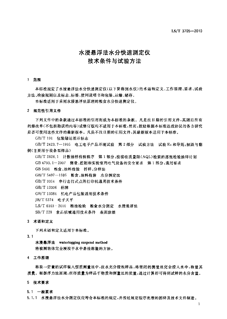 LS/T 3705-2010 水浸悬浮法水分快速测定仪技术条件与试验方法