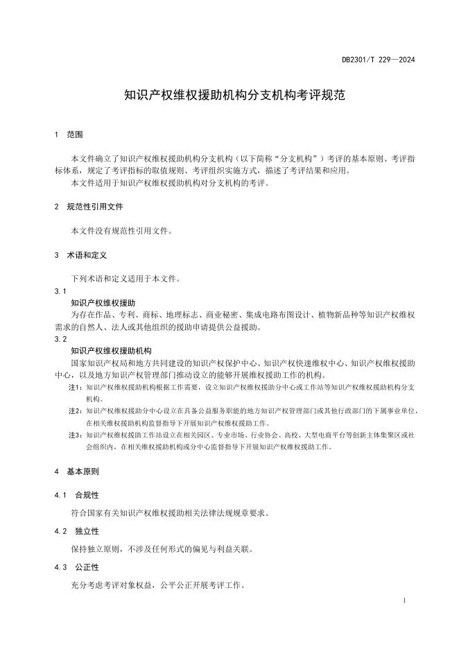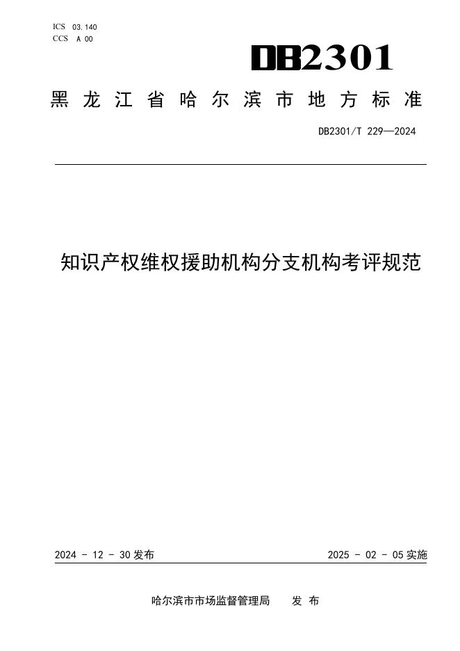 DB2301/T 229-2024 知识产权维权援助机构分支机构考评规范