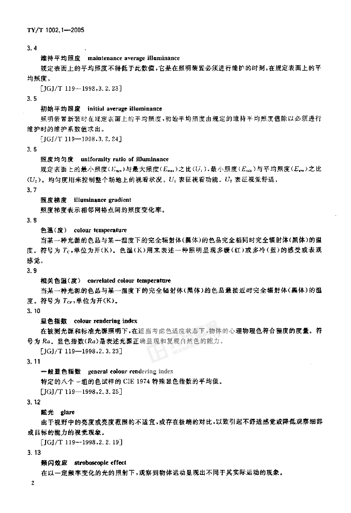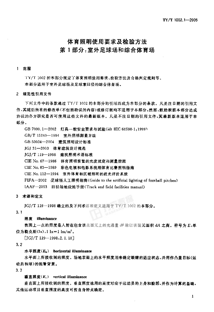 TY/T 1002.1-2005 体育照明使用要求及检验方法 第1部分:室外足球场和综合体育场