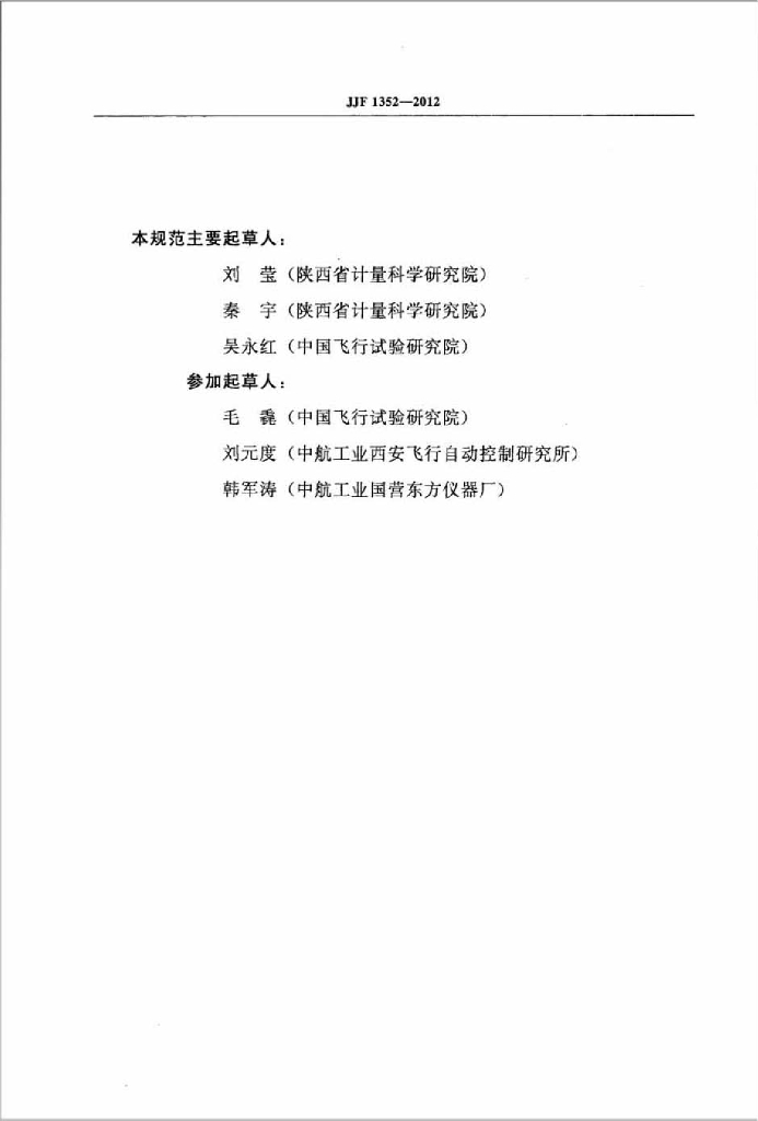 刘莹(陕西省计量科学研究院)、秦宇(陕西省计量科学研究院)、吴永红(中国飞行试验研究院)、毛毳(中国飞行试验研究院)、刘元度(中航工业西安飞行自动控制研究所)、韩军涛(中航工业国营东方仪器厂)