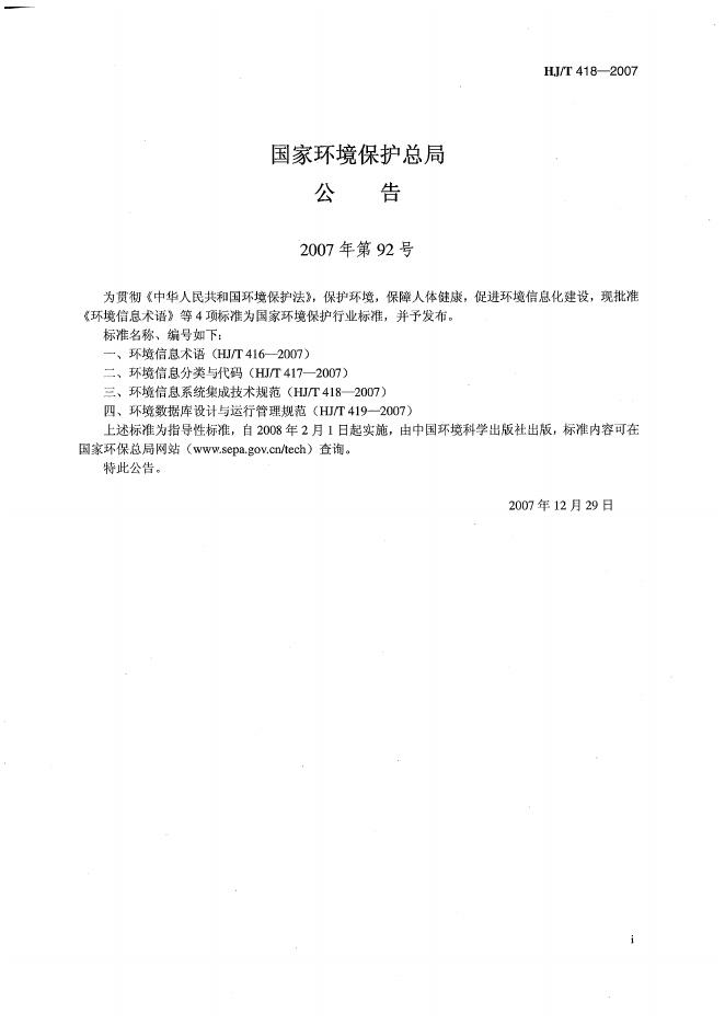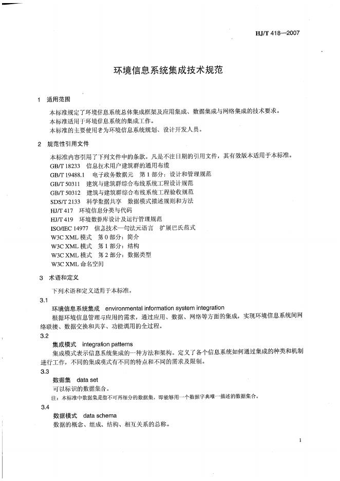 HJ/T 418-2007 环境信息系统集成技术规范