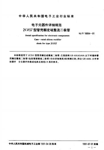 SJ/T 10054-1991 2CZ57型硅整流二级管详细规范