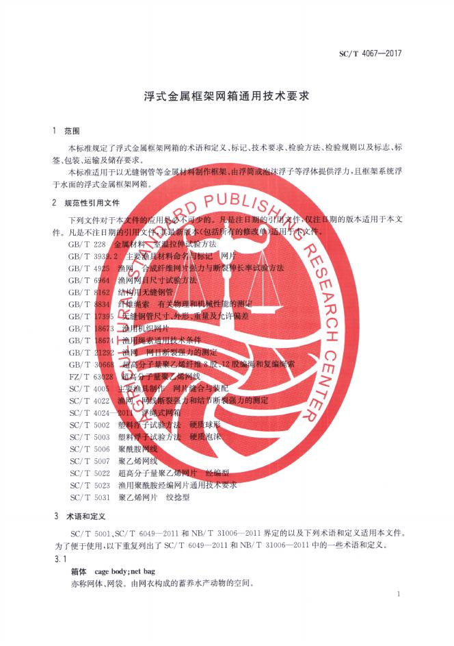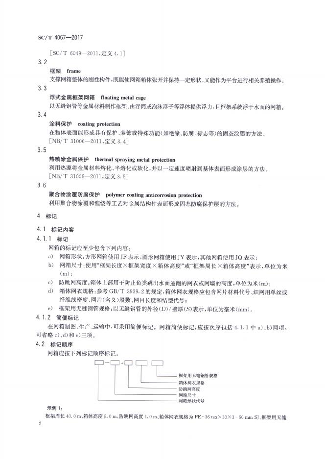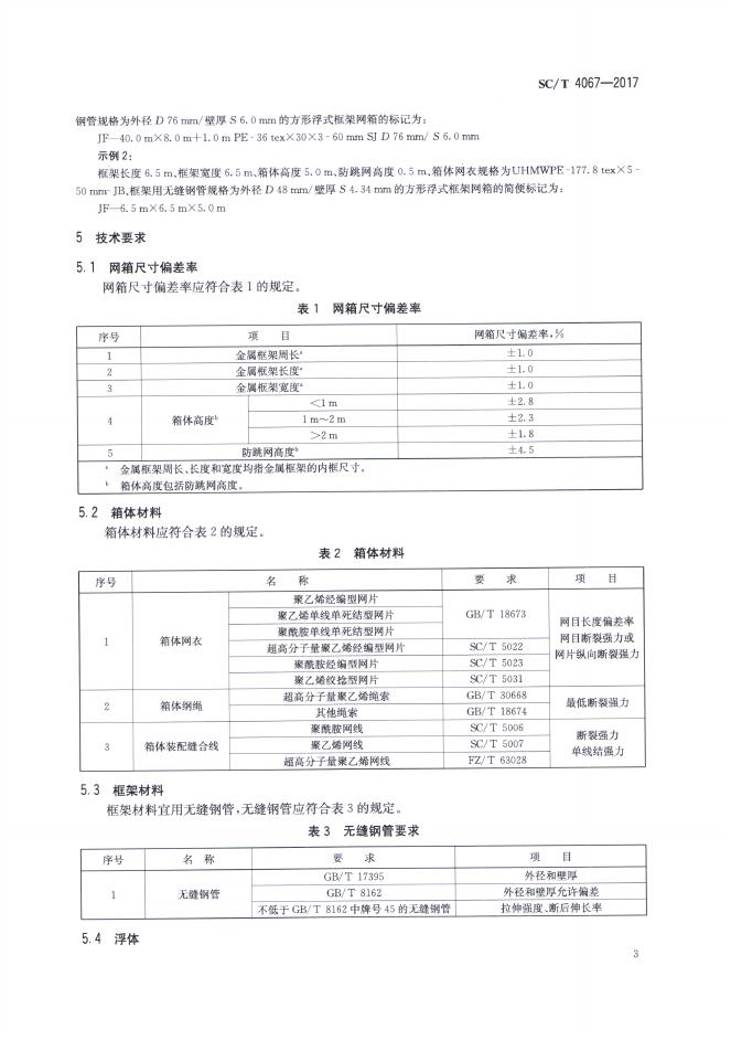SC/T 4067-2017 浮式金属框架网箱通用技术要求