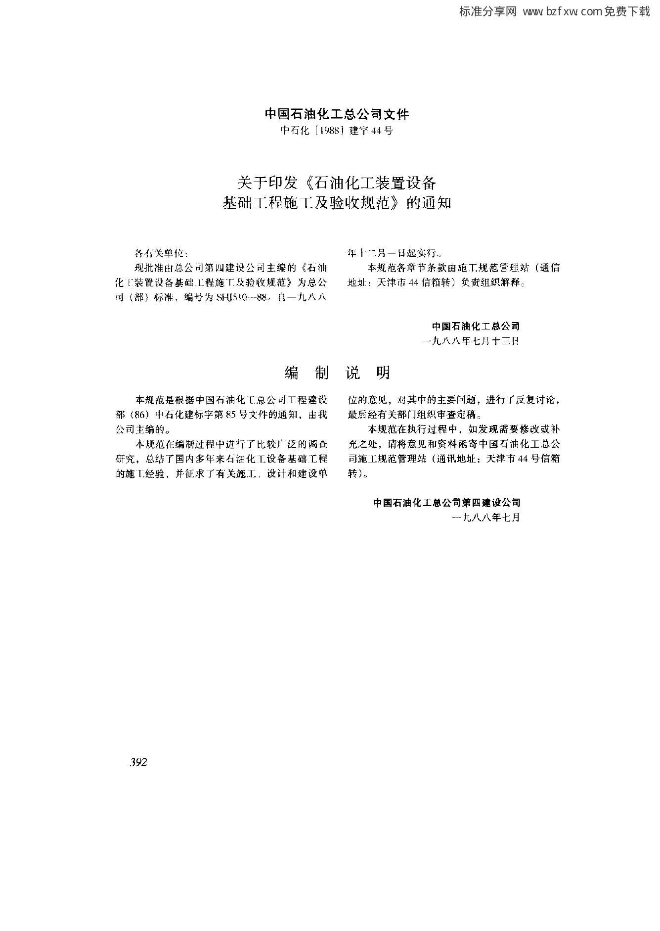 SHJ 510-1988 石油化工装置设备基础工程施工及验收规范