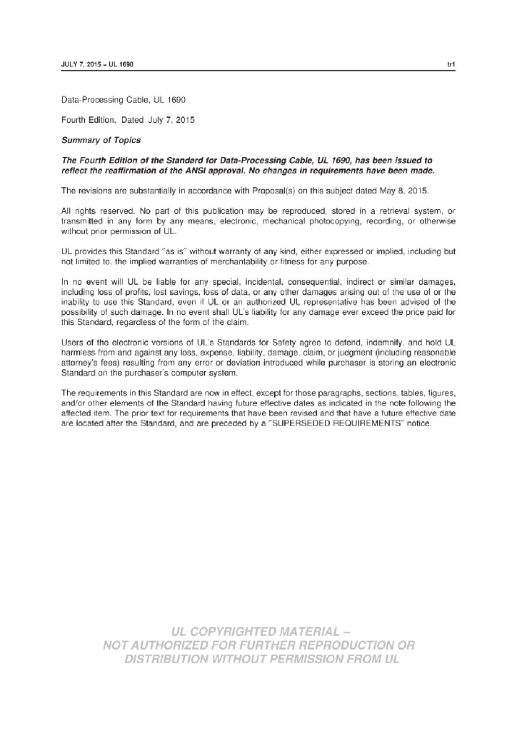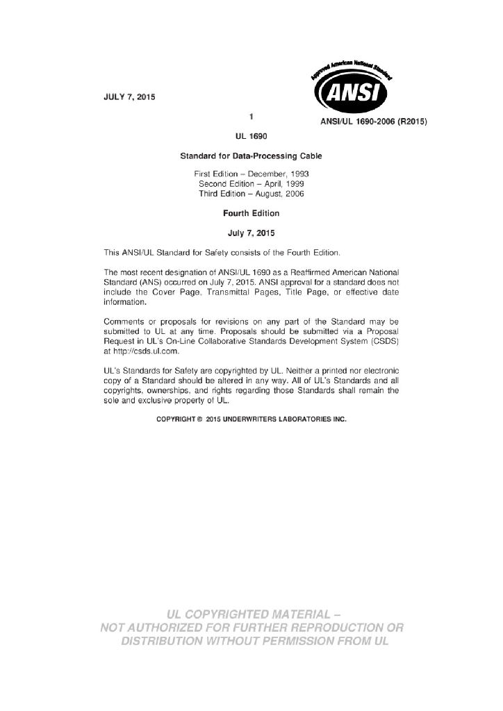 UL 1690-2015 数据传输电缆