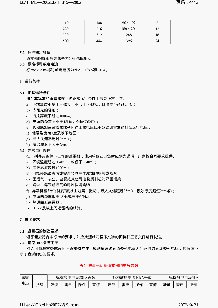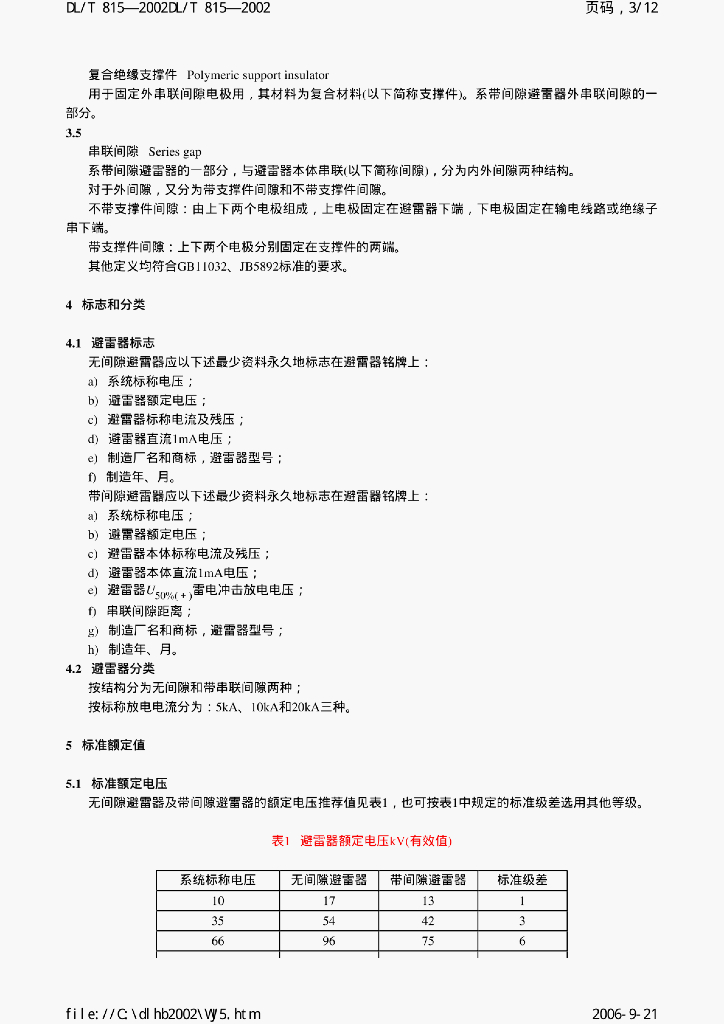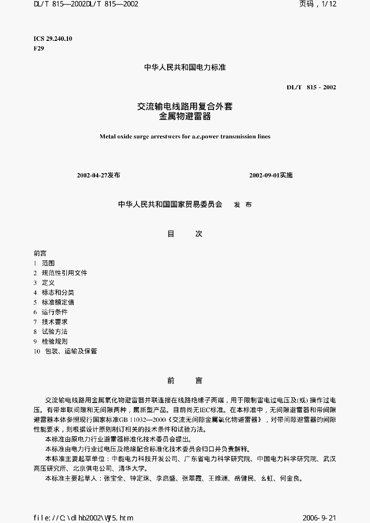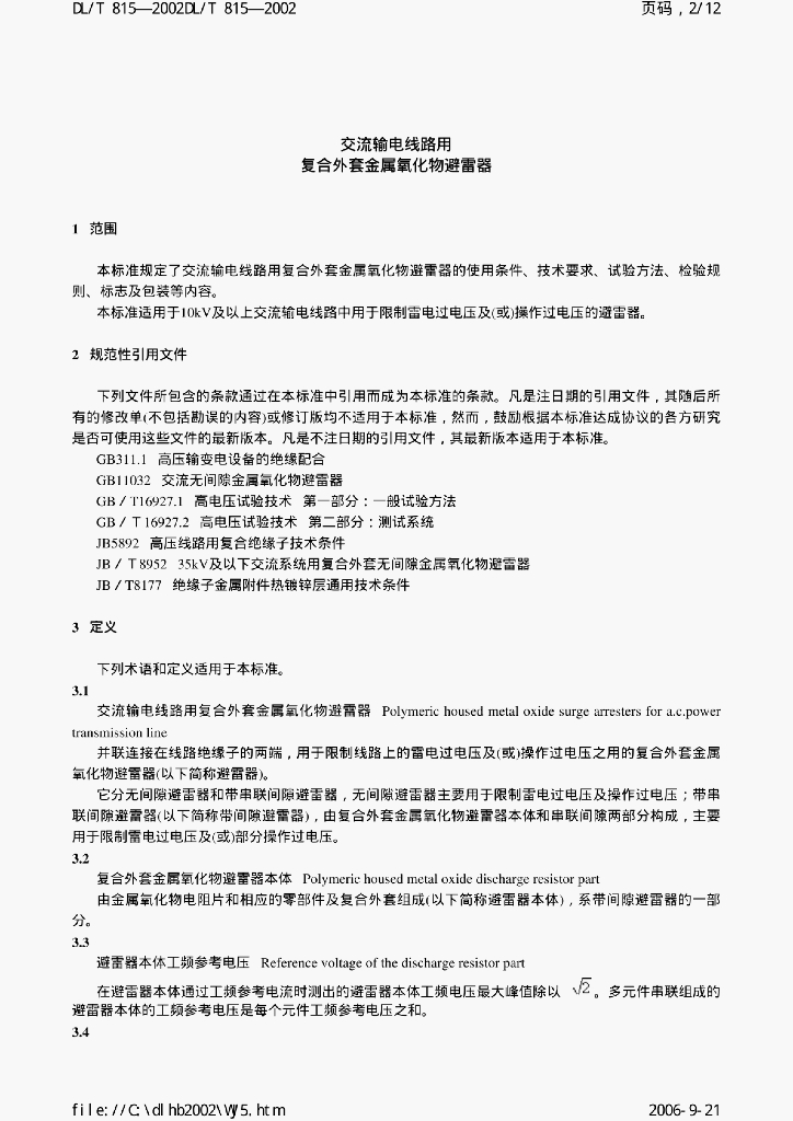 DL/T 815-2002 交流输电线路用复合外套金属物避雷器