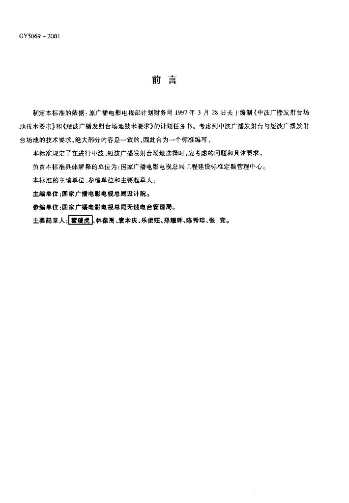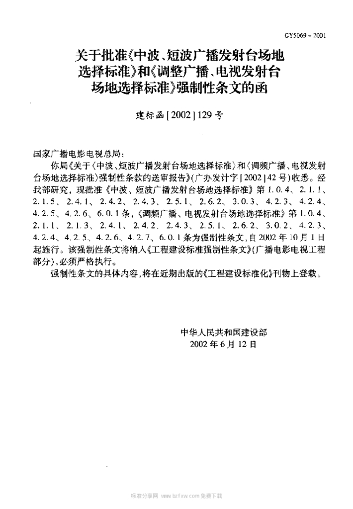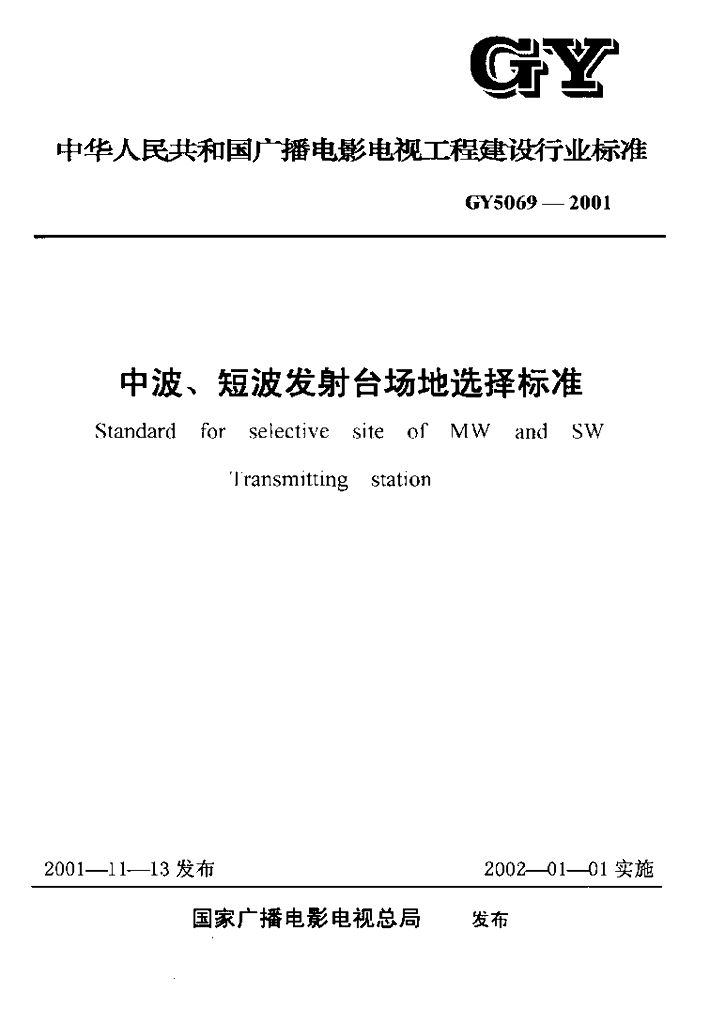 GY 5069-2001 中波、短波发射台场地选择标准