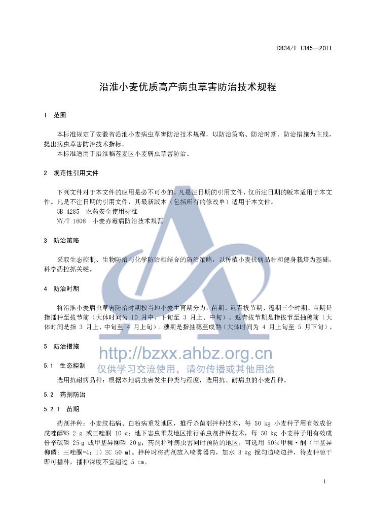 DB34/T 1345-2011 沿淮小麦优质高产病虫草害防治技术规程