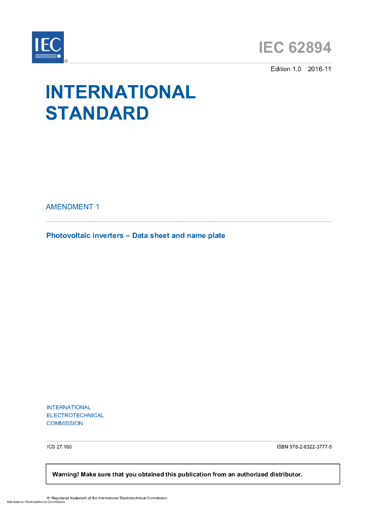 IEC 62894-2014/Amd 1-2016 修改单1 光伏逆变器 记录表与铭牌