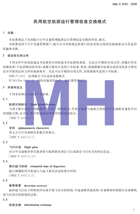 MH/T 4025-2008 民用航空航班运行管理信息交换格式