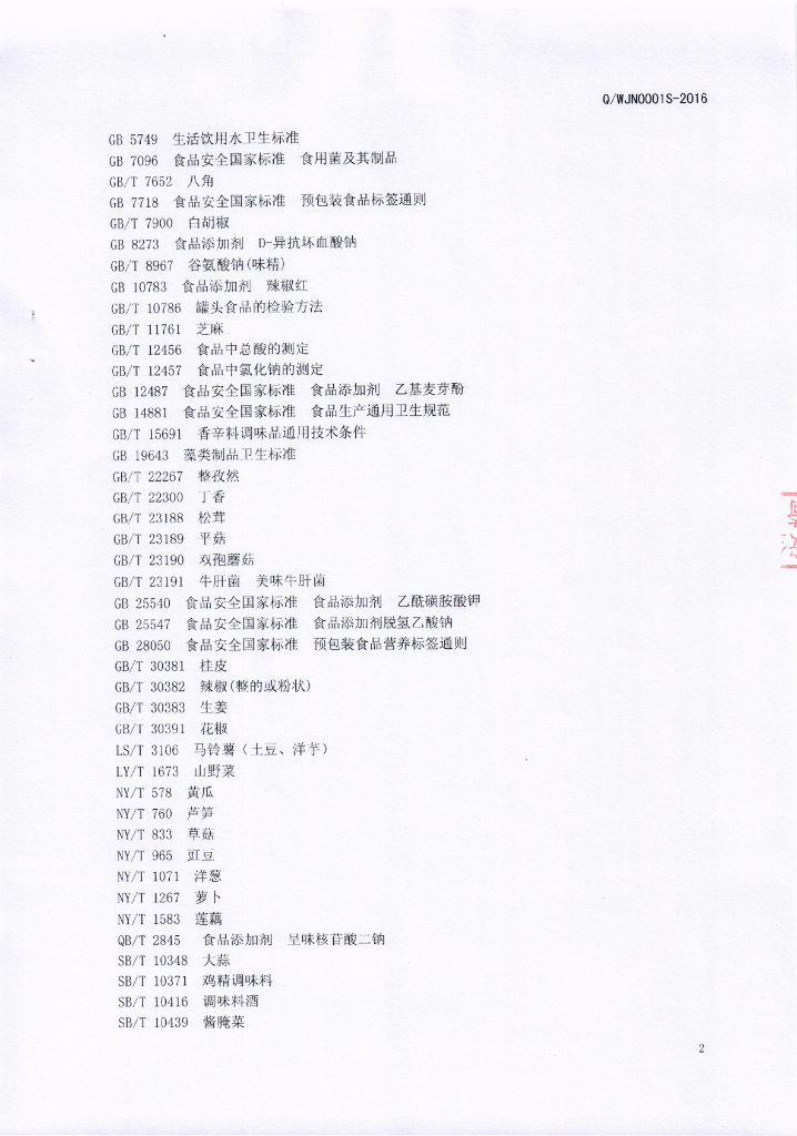 Q/WJN 0001S-2016 成都市万家农业发展有限公司 风味蔬菜