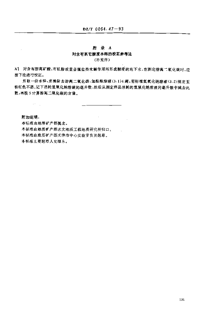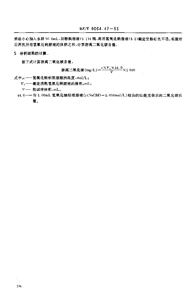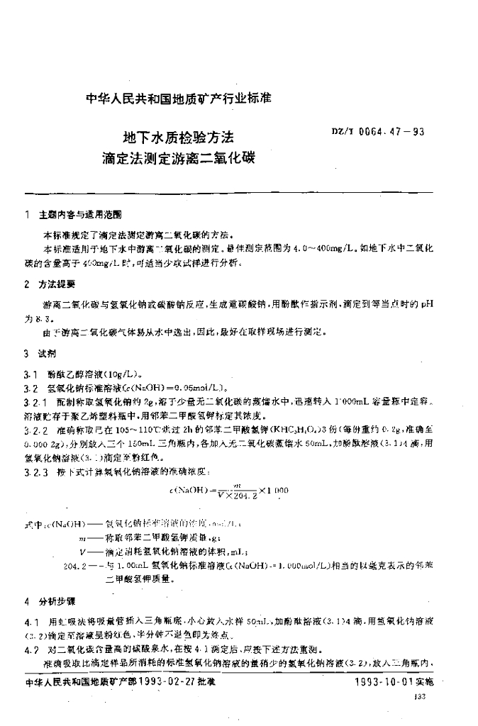DZ/T 0064.47-1993 地下水质检验方法 滴定法测定游离二氧化碳
