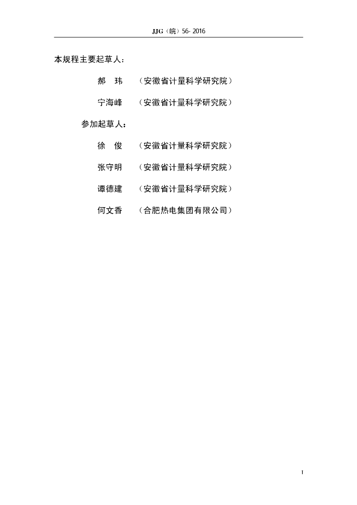 郝玮(安徽省计量科学研究院)、宁海峰(安徽省计量科学研究院)、徐俊(安徽省计量科学研究院)、张守明(安徽省计量科学研究院)、谭德建(安徽省计量科学研究院)、何文香(合肥热电集团有限公司)