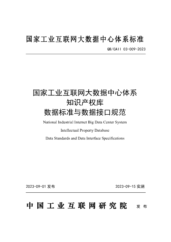 QB/CAII 03-009-2023 国家工业互联网大数据中心体系 知识产权库 数据标准与数据接口规范