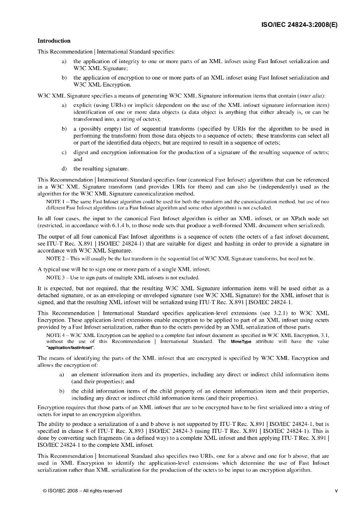 ISO/IEC 24824-3-2008 信息技术 ASN.1的一般应用:Fast infoset(一种网络管理系统信息交互格式)安全