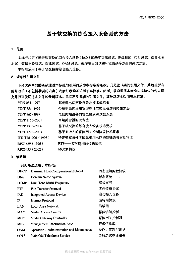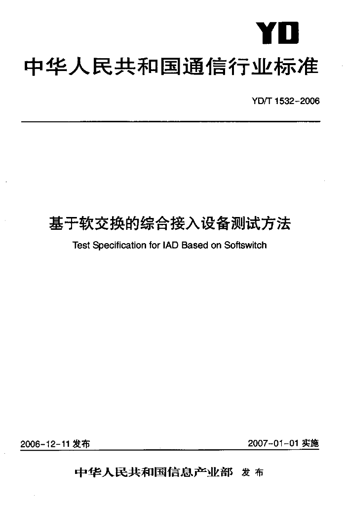YD/T 1532-2006 基于软交换的综合接入设备测试方法