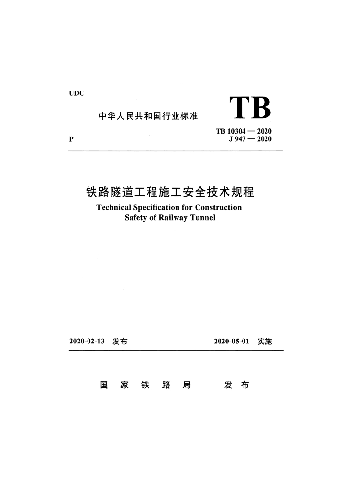 TB 10304-2020 铁路隧道工程施工安全技术规程