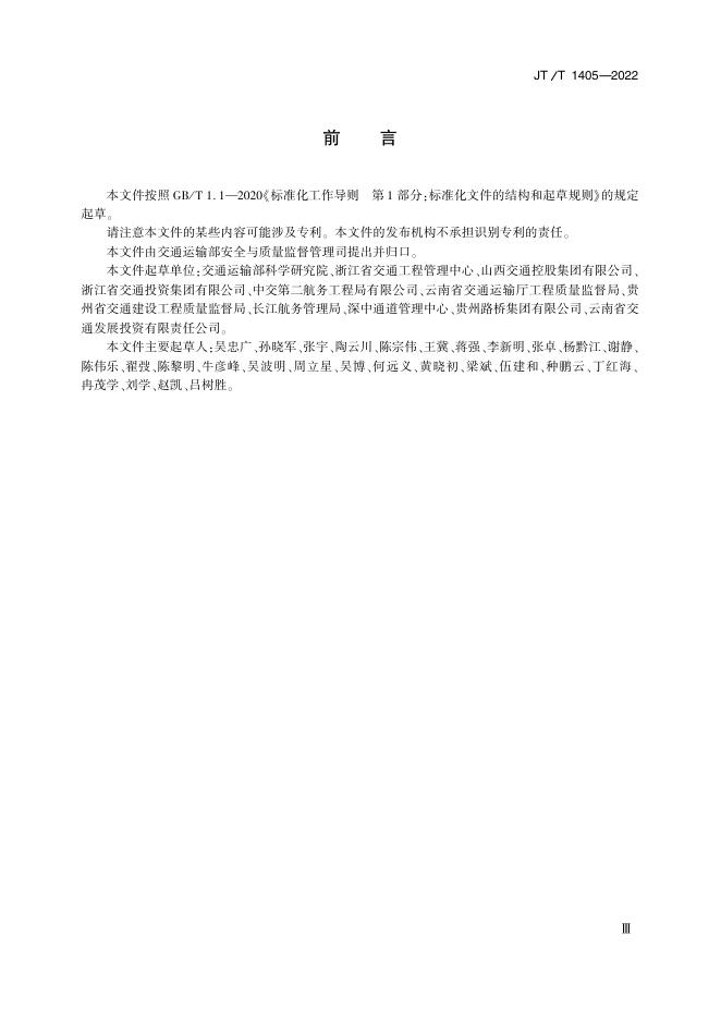 交通运输部科学研究院、浙江省交通工程管理中心、山西交通控股集团有限公司、浙江省交通投资集团有限公司、中交第二航务工程局有限公司、云南省交通运输厅工程质量监督局、贵州省交通建设工程质量监督局、长江航务管理局、深中通道管理中心、贵州路桥集团有限公司、云南省交通发展投资有限责任公司