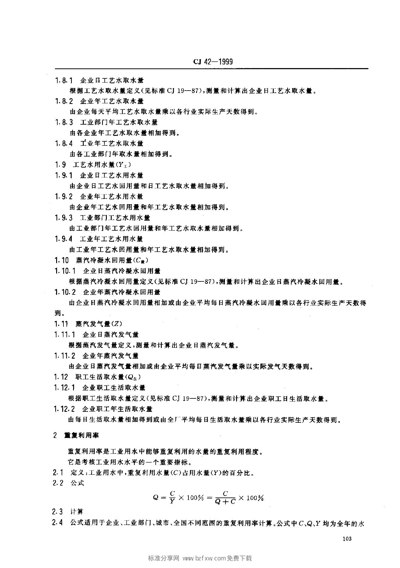 CJ 42-1999 工业用水考核指标及计算方法