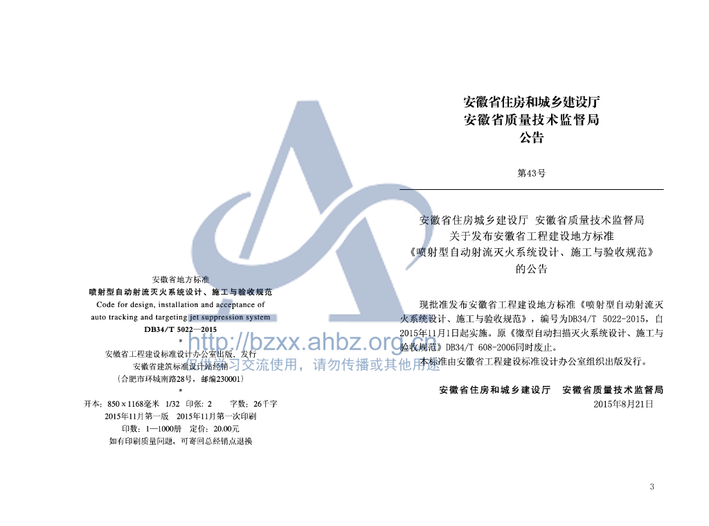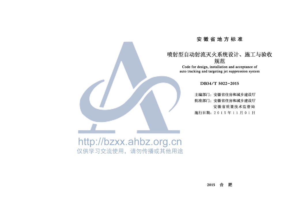 DB34/T 5022-2015 喷射型自动射流灭火系统设计、施工与验收规范
