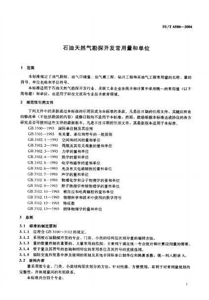 SY/T 5895-1993 石油工业常用量和单位勘探开发部分